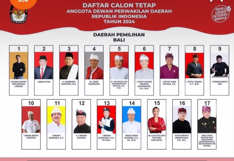 Daftar Calon Tetap DPD RI Dapil Bali dalam Pemilu 2024.